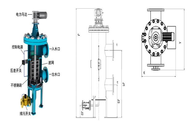 循環(huán)水旁濾器多個濾筒安裝于一個過濾器筒體內(nèi),結(jié)構(gòu)緊湊。全自動反沖洗過濾器用于去除低粘度介質(zhì)中的固體顆粒。需過濾的介質(zhì)從內(nèi)向外流過過濾器的楔形網(wǎng)濾芯,固體顆粒截留在濾芯內(nèi)側(cè)。隨著污染物的增多,過濾器污染側(cè)和清潔側(cè)之間的壓差增大。若壓差達(dá)到設(shè)置的觸發(fā)壓差便開始自動反沖洗。反沖洗時.電動機(jī)通過減速器轉(zhuǎn)動欲清洗濾芯下面的沖洗臂,進(jìn)入反沖洗狀態(tài)的濾芯,原料液流被中斷。反沖洗排污閥門(電磁閥/氣動閥)開啟,濾液側(cè)和反沖洗管路之間的壓降把一小部分濾液逆向沖入欲清洗的濾芯。聚積在濾筒內(nèi)側(cè)的污染顆粒物被松開并通過沖洗臂沖進(jìn)反沖洗管路。濾芯的反沖洗時間一過,反沖洗閥立即關(guān)閉。