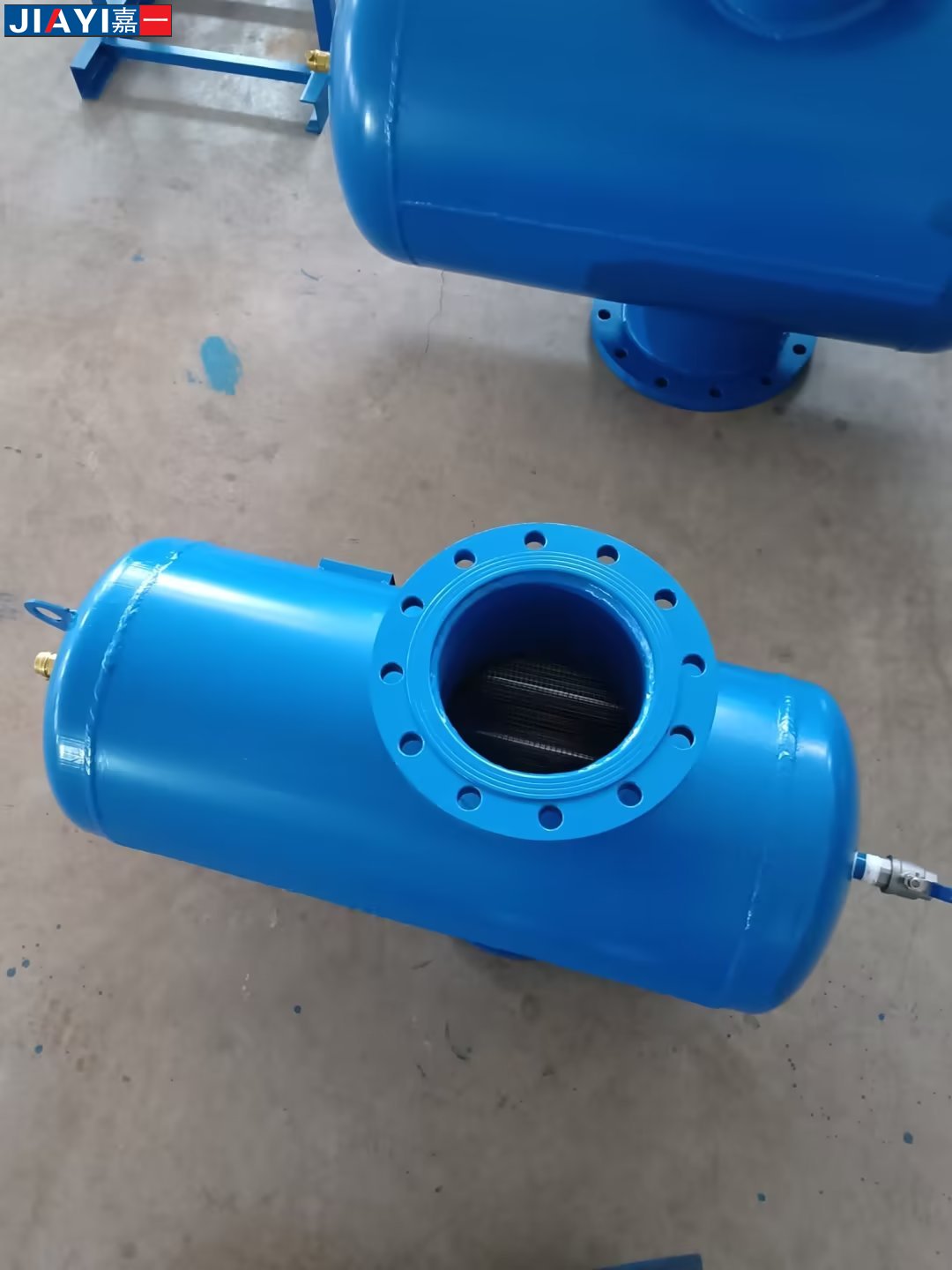 利用氣水分離、沉降、過濾等機(jī)理。當(dāng)冷卻水、熱水、冷凍水系統(tǒng)中水進(jìn)入螺旋脫氣過濾器時,體積擴(kuò)大,流速急劇降低,水中氣泡分離上升至聚氣區(qū),小氣泡吸附在分離板上,當(dāng)形成大氣泡上升至聚氣區(qū)后通過自動排氣閥排除。